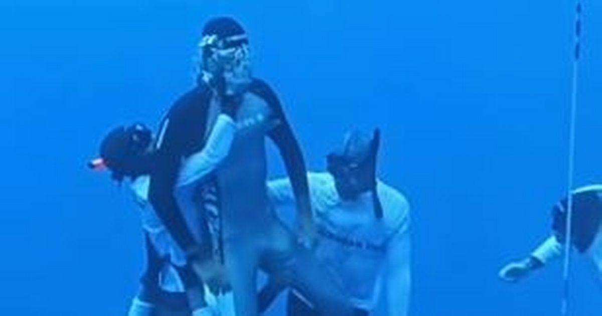 A free-diver was saved from certain death after suffering a blackout at around 410 feet below sea level.