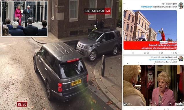 ‘It fits to the SAD EastEnders theme!’ Twitter sees the funny side as Boris the great entertainer leaves Downing Street as Prime Minister – after telling the country: ‘this is it folks!’