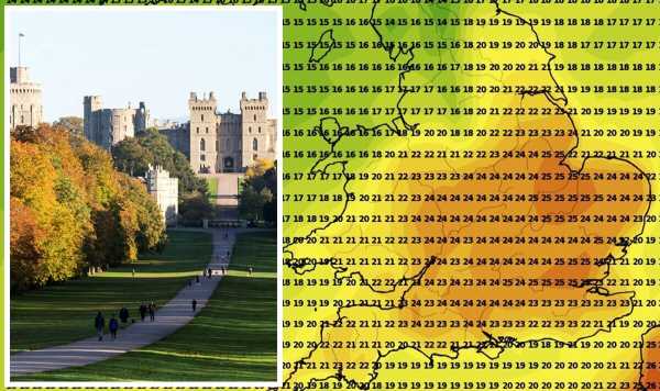 Windsor Castle will see highs of 25C today, but showers will sweep across tomorrow from 2pm.
