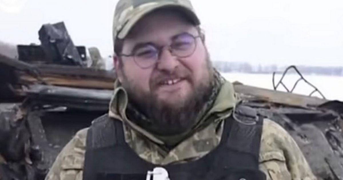 In a video posted by CBS News, he was seen dressed in a camouflage uniform and black vest, standing among the wreckage of a burned-out Russian tank.