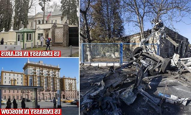 US closes embassy in Belarus and threatens country with sanctions if it joins Russian invasion of Ukraine: Non-essential embassy staff are told to leave Russia