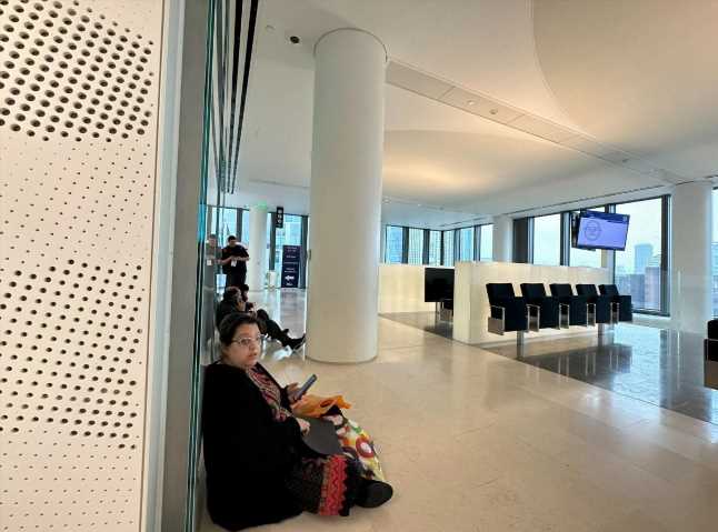 Photos shared online show people crouching on the floor and sitting back against the walls.