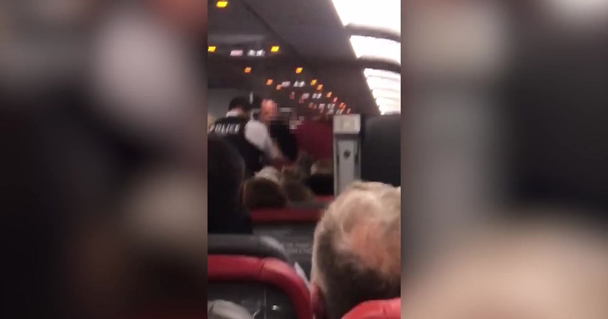 Video footage of the incident shows police boarding the flight to apprehend the crazed woman.